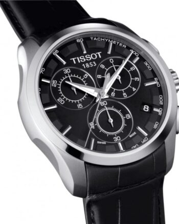 Tissot Multi Functional Chronograph Black Leather Strap Watch For Men