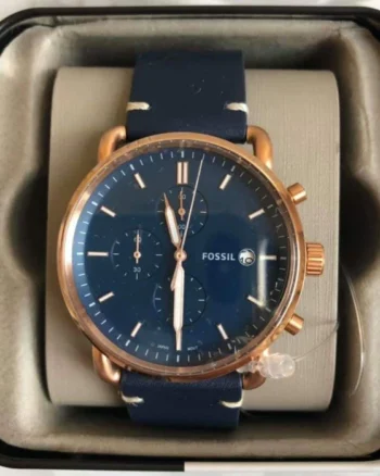 Fossil The Commuter Blue Dial Blue Leather Strap Watch for Men
