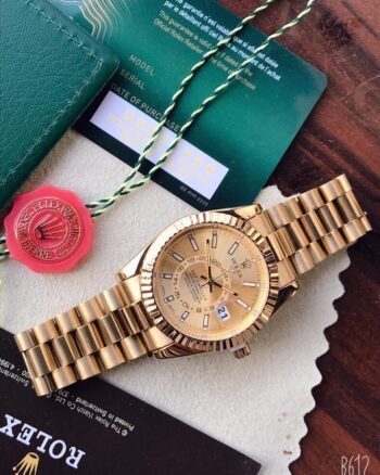 Marvellous Rolex Gold Dial Metal Belt Analog Quartz Movement For Men