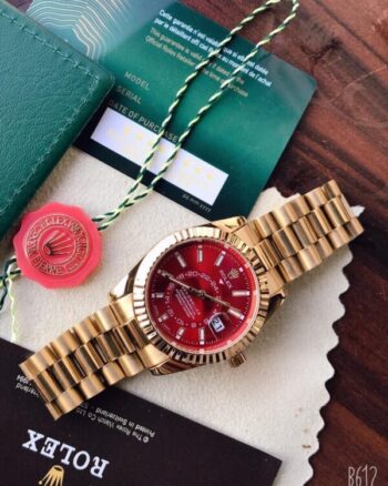 Stylish Rolex Red Dial Metal Belt Analog Quartz Movement For Men’s watch