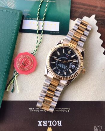 Spectacular Rolex Black Dial Metal Belt Watch For Men