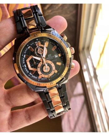 Edifice Chronograph Black And Rose Gold Metal Belt Watch For Men