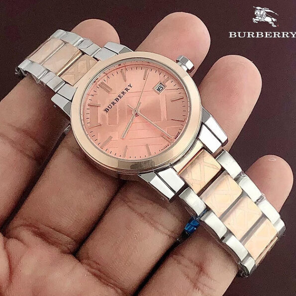 Emporio Armani Rose Gold And Silver Belt Diamond Studded Watch For Women