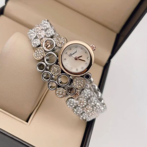 Chopard Rose Gold and Silver Diamond Studded White Dial Watch For Women