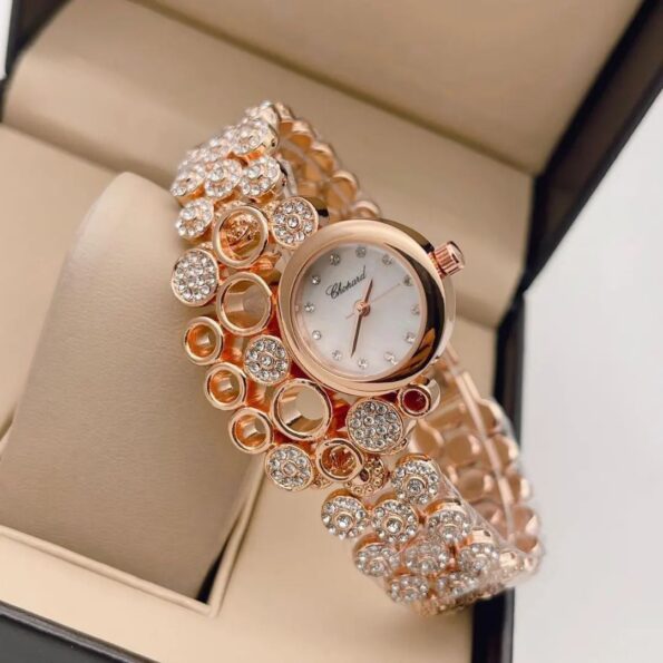 Elegant Chopard Rose Gold Diamond Studded White Dial Watch For Women
