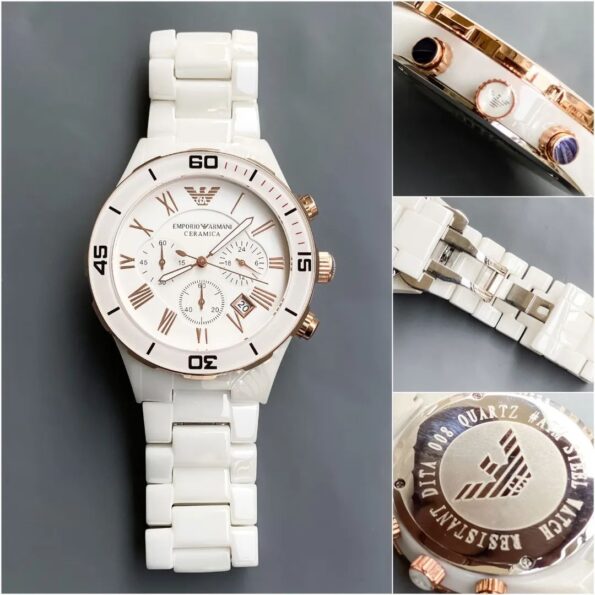 Emporio Armani Ceramica White Metal Belt Chronograph Watch For Men
