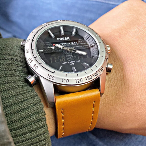 Fossil Analog With Digital Black Bezel Leather Strap Men’s Watch
