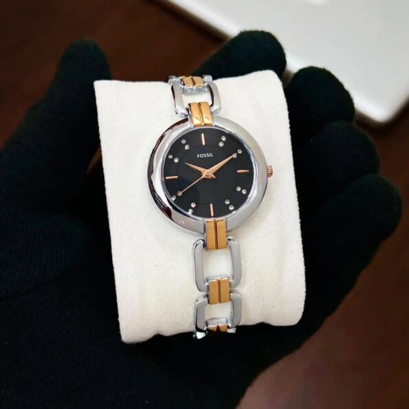 Emporio Armani Rose Gold Metal Belt Diamond Studded Watch For Women
