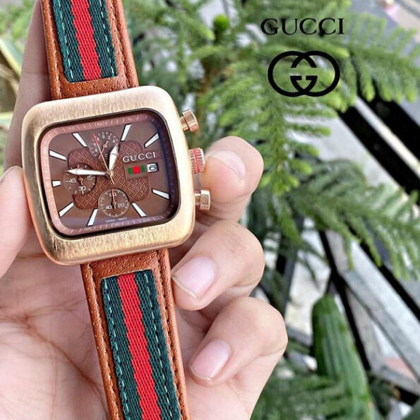 Gucci Brown Dial Analog Quartz Datejust Leather Belt Square Model Men’s Watch