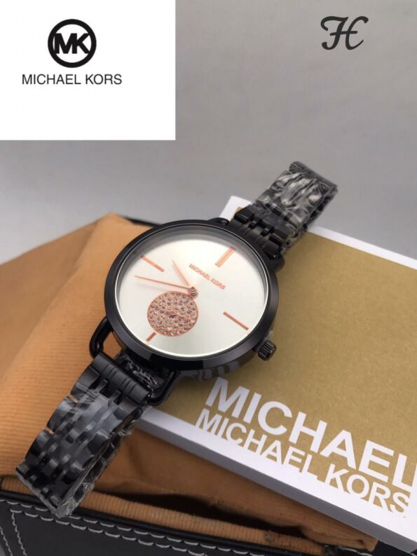 Michael Kors Black Metal Strap Diamond Watch For Women