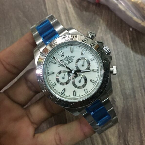 Rolex Blue & Silver Metal Strap Multi Functional Watch For Men