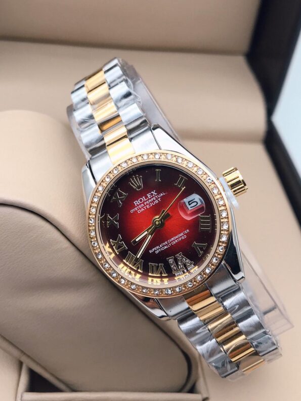 Rolex Red Dial Silver And Gold Metal Strap Women’s Watch