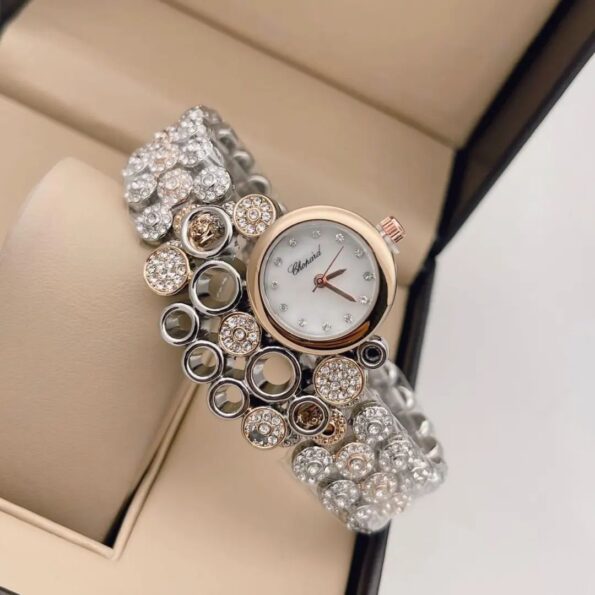 Chopard Rose Gold Diamond Studded Black Dial Watch For Women