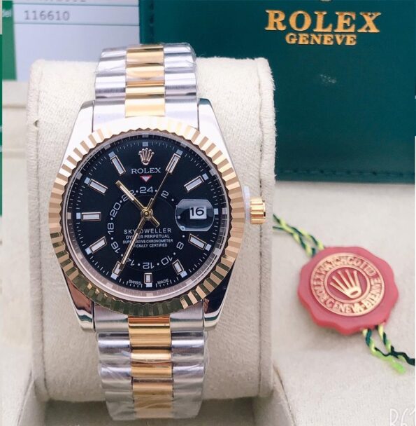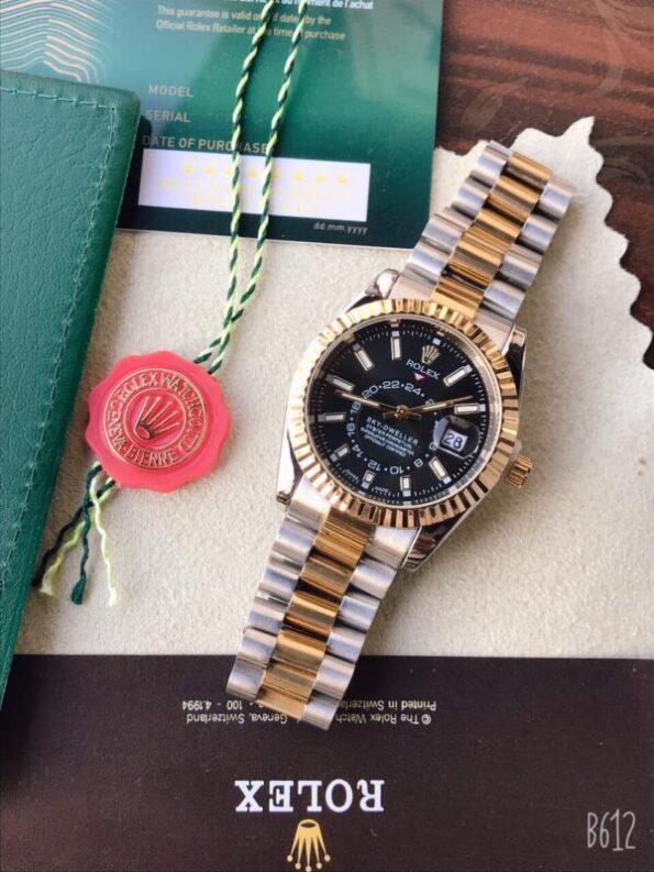 Spectacular Rolex Black Dial Metal Belt Watch For Men