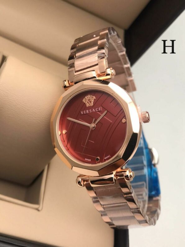 Versace Red Dial Rose Gold Metal Strap Women’s Watch